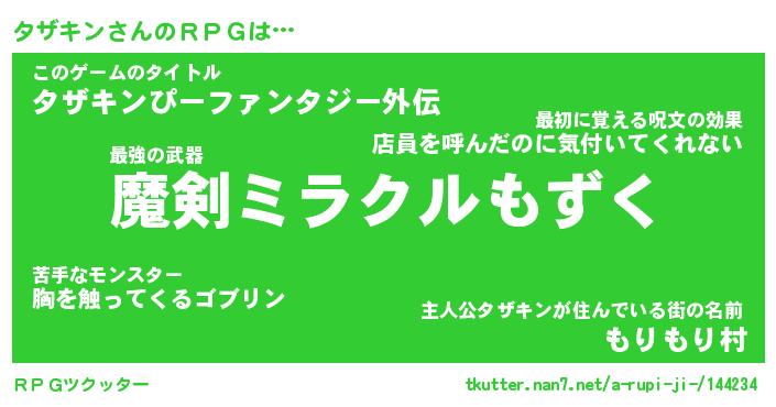 | 男性向けラノベタイトル風あだ名 | 『タザキンの憂鬱』 |