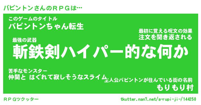 | ファンタジー風あだ名 | 『バビフェル』『エターナルバビントンー』 |
