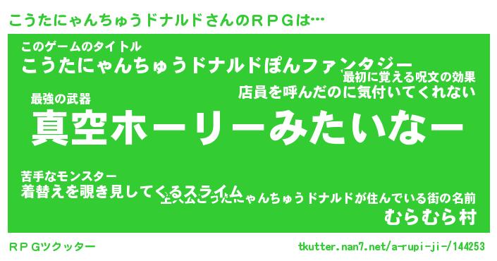 | 伝説のあだ名 | 『封印されし傭兵こうたにゃんちゅうドナルド』 |
