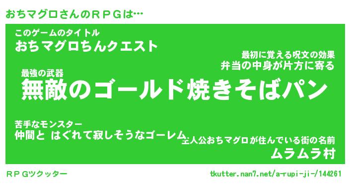 | 男性向けラノベタイトル風あだ名 | 『オチマグロアートオンライン』 |