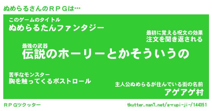 | ファンタジー風あだ名 | 『ヌメフェル』『エターナルヌメラルー』 |