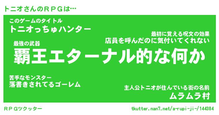 | 男性向けラノベタイトル風あだ名 | 『トニオアートオンライン』 |
