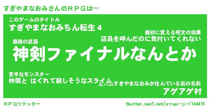 | 女子向けラノベタイトル風あだ名 | 『すぎやまなおみ姫と円卓の騎士』 |