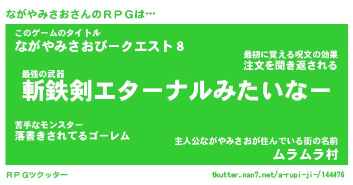 | 伝説のあだ名 | 『伝説の傭兵ながやみさお』 |