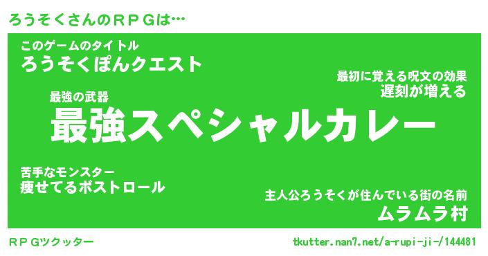 | ファンタジー風あだ名 | 『ロウフェル』『エターナルロウソクー』 |