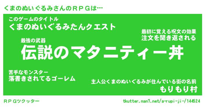 | 料理風あだ名 | 『節約★くまのぬいぐるみと油揚げの玉子丼』 |