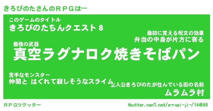 | 伝説のあだ名 | 『封印されし竜騎士きろぴのた』 |