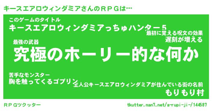 | 男性向けラノベタイトル風あだ名 | 『キースエアロウィンダミアアートオンライン』 |