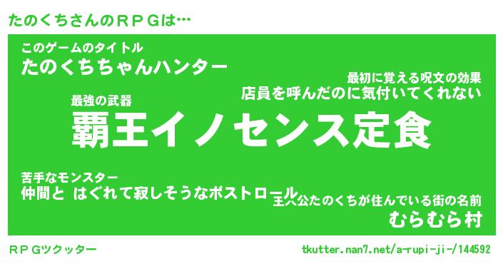 | 男性向けラノベタイトル風あだ名 | 『タノクチアートオンライン』 |