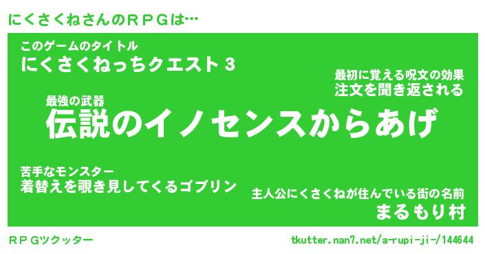 | ファンタジー風あだ名 | 『ニクフェル』『エターナルニクサクネー』 |