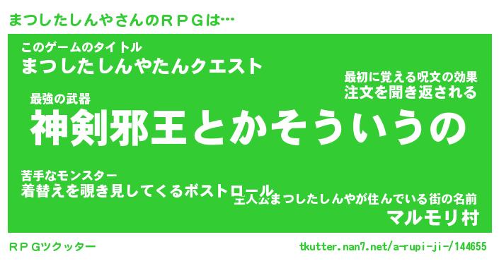 | 男性向けラノベタイトル風あだ名 | 『まつしたしんやの憂鬱』 |