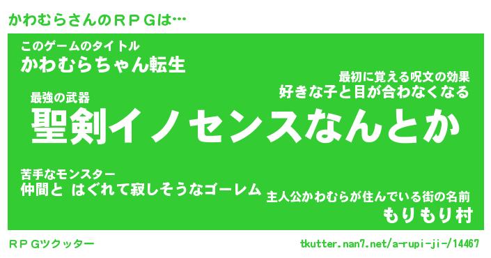 | 胡散臭い通販商品みたいなあだ名 | 『必ず成功する霊験あらたかなお札…その名も「かわむら」』 |