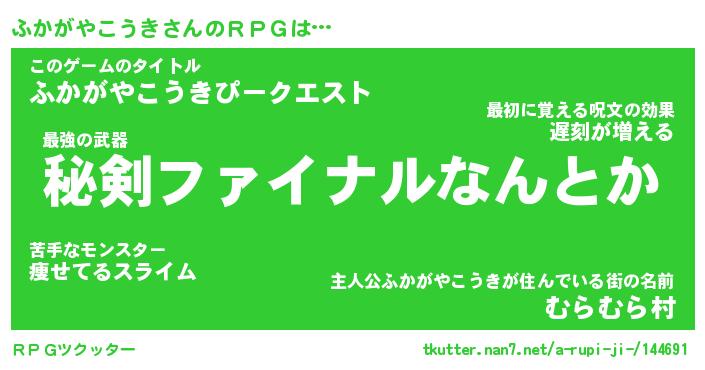 | 胡散臭い通販商品みたいなあだ名 | 『必ず成功するブレスレット…その名も「ふかがやこうき」』 |