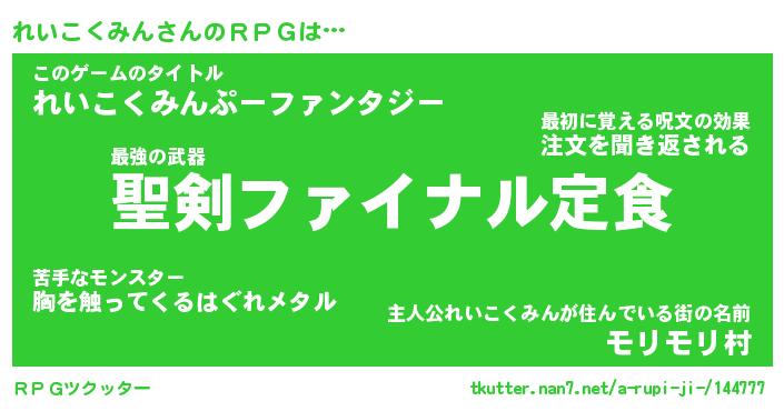 | 伝説のあだ名 | 『伝説の傭兵れいこくみん』 |