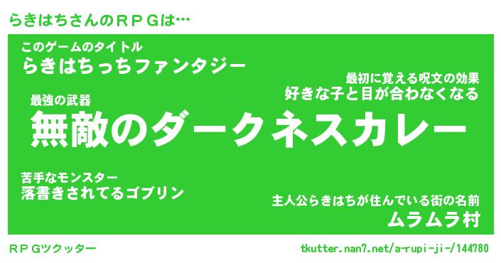 | ヒーロー風カッコイイあだ名 | 『スーパーラキハチ』『幻影騎士ラキ』 |