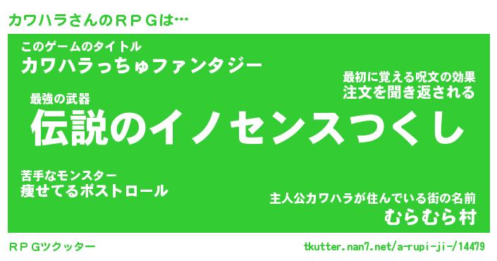 | 胡散臭い通販商品みたいなあだ名 | 『モテモテ間違いなし霊験あらたかなお札…その名も「カワハラ」』 |