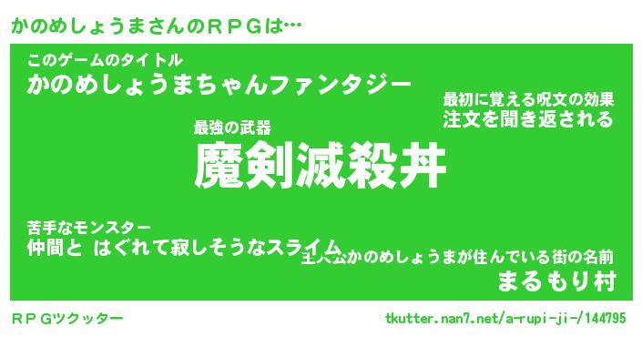 | 男性向けラノベタイトル風あだ名 | 『かのめしょうまの憂鬱』 |