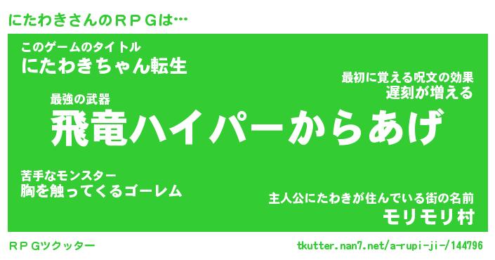 | ファンタジー風あだ名 | 『ニタフェル』『エターナルニタワキー』 |