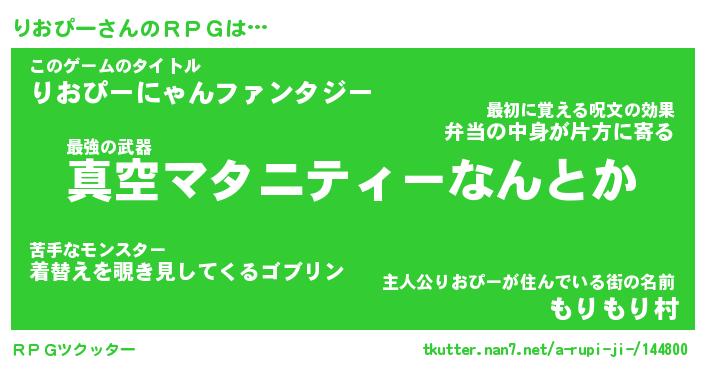 | 男性向けラノベタイトル風あだ名 | 『リオピーアートオンライン』 |