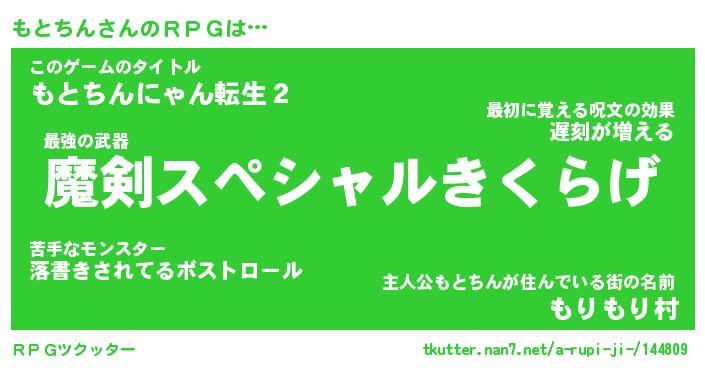 | 男性向けラノベタイトル風あだ名 | 『もとちんの憂鬱』 |