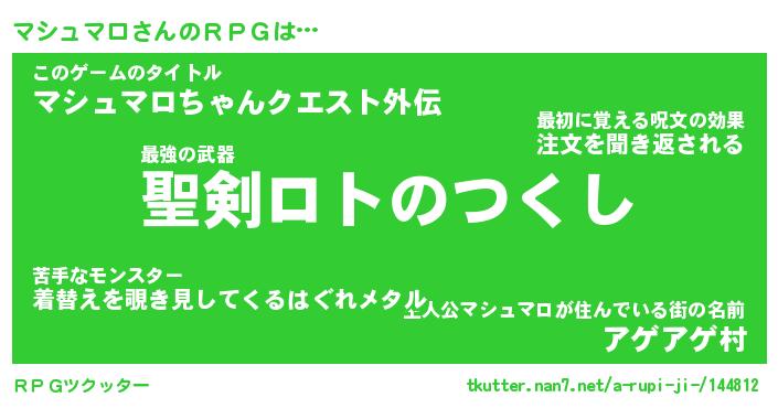 | 伝説のあだ名 | 『伝説の竜騎士マシュマロ』 |