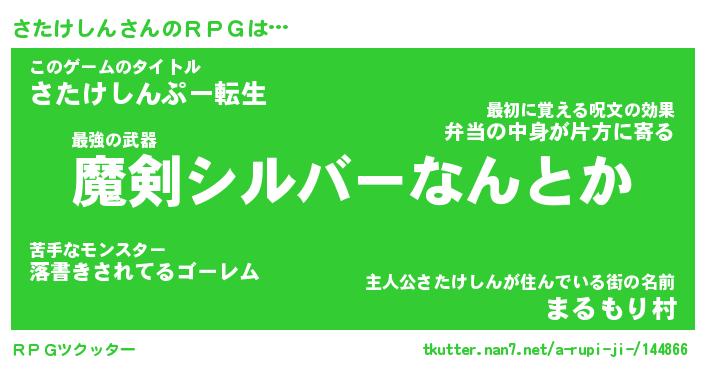| ファンタジー風あだ名 | 『サタフェル』『エターナルサタケシンー』 |
