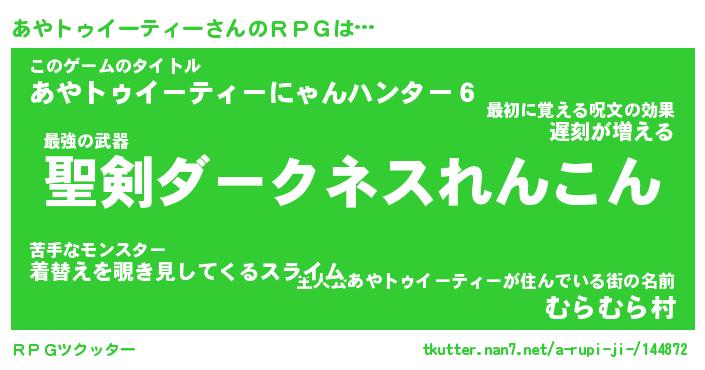 | ヒーロー風カッコイイあだ名 | 『スーパーアヤトゥイーティー』 |