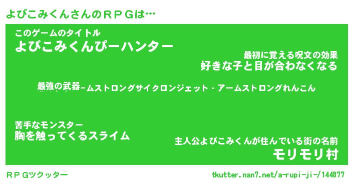 | 男性向けラノベタイトル風あだ名 | 『ヨビコミクンアートオンライン』 |