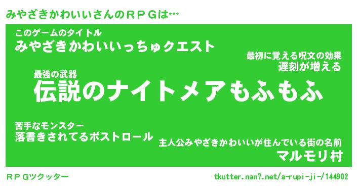 | 胡散臭い通販商品みたいなあだ名 | 『モテモテ間違いなし霊験あらたかなお札…その名も「みやざきかわいい」』 |