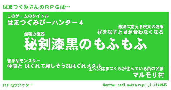 | ファンタジー風あだ名 | 『ハマフェル』『エターナルハマツグミー』 |