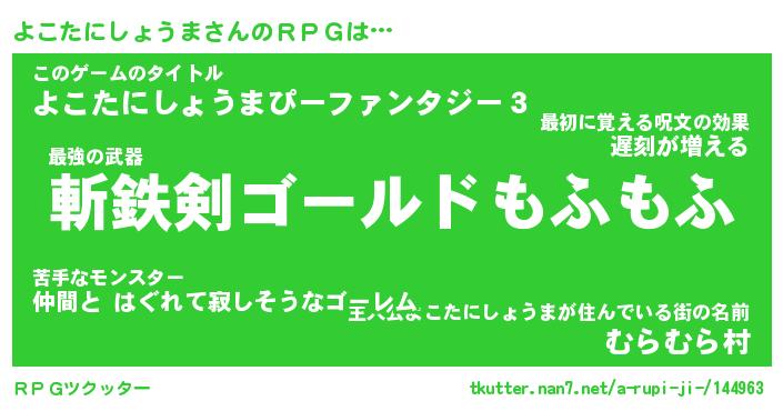 | 男性向けラノベタイトル風あだ名 | 『よこたにしょうまの憂鬱』 |