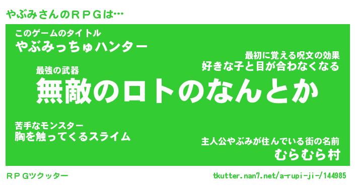 | 男性向けラノベタイトル風あだ名 | 『ヤブミアートオンライン』 |