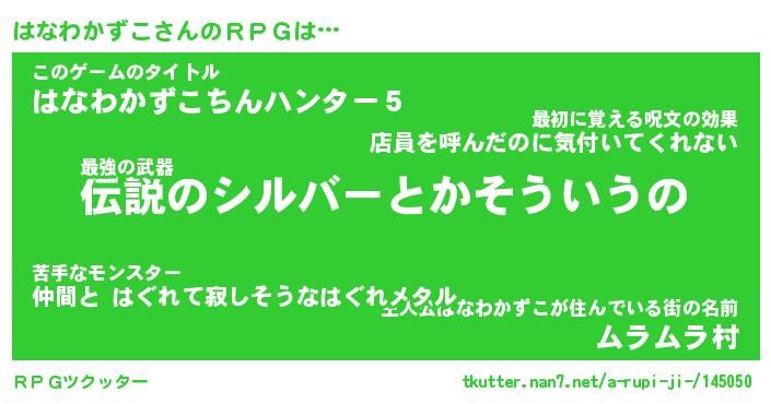 | ヒーロー風カッコイイあだ名 | 『スーパーハナワカズコ』『天弓騎士ハナ』 |