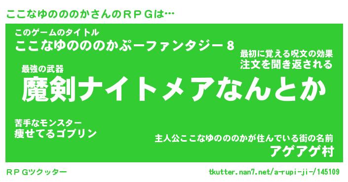 | 伝説のあだ名 | 『伝説のスナイパーここなゆのののか』 |