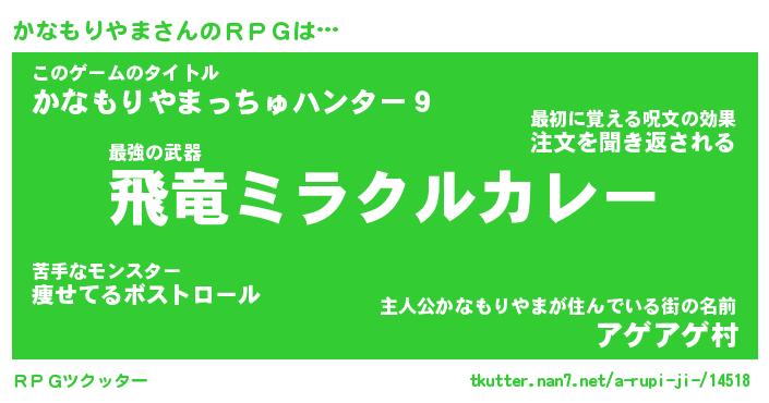 | 伝説のあだ名 | 『封印されし竜騎士かなもりやま』 |
