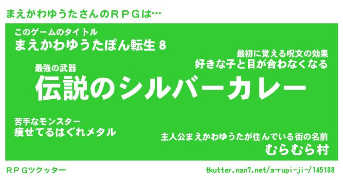 | 伝説のあだ名 | 『不死鳥の傭兵まえかわゆうた』 |