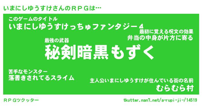 | ツイッター | いまにしゆうすけさんのツイッターID『kikurage_idle』 |