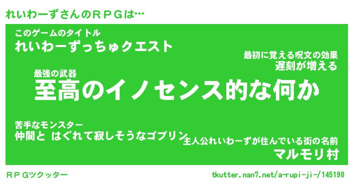 | ファンタジー風あだ名 | 『レイフェル』『エターナルレイワーズー』 |