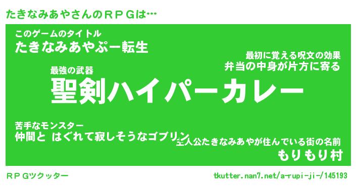 | ヒーロー風カッコイイあだ名 | 『スーパータキナミアヤ』『暗黒騎士タキ』 |
