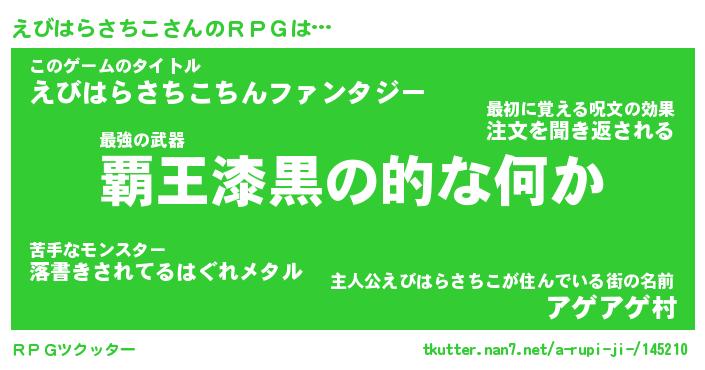 | 伝説のあだ名 | 『封印されしスナイパーえびはらさちこ』 |