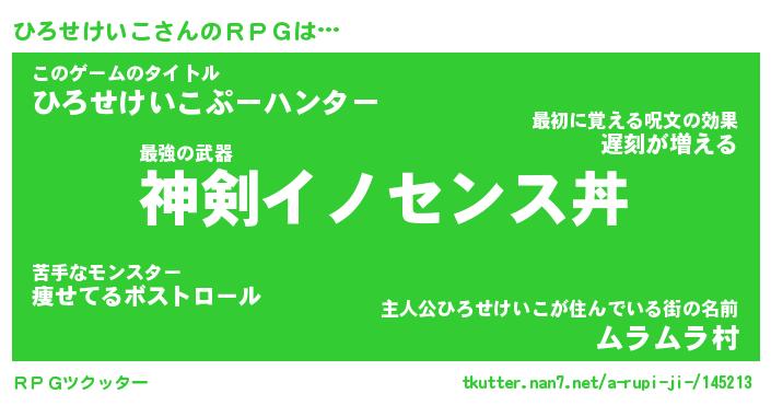 | ヒーロー風カッコイイあだ名 | 『スーパーヒロセケイコ』『幻影騎士ヒロ』 |