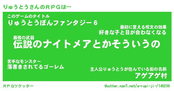 | ファンタジー風あだ名 | 『リュフェル』『エターナルリュウトウー』 |