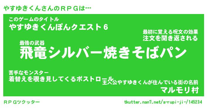 | 男性向けラノベタイトル風あだ名 | 『ヤスユキクンアートオンライン』 |