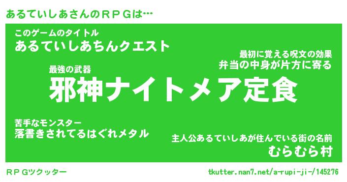 | 伝説のあだ名 | 『封印されしスナイパーあるていしあ』 |