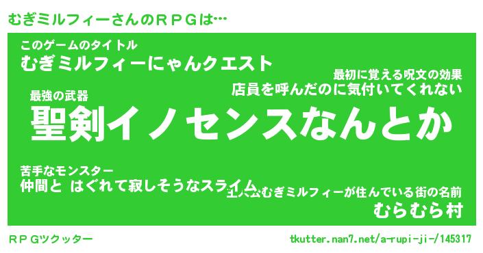 | 伝説のあだ名 | 『伝説のスナイパーむぎミルフィー』 |