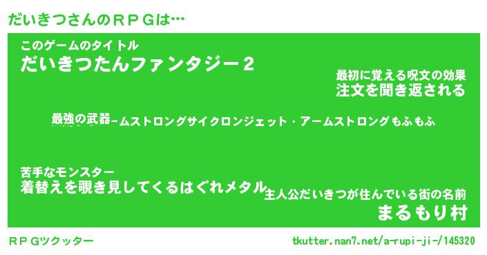 | ファンタジー風あだ名 | 『ダイフェル』『エターナルダイキツー』 |