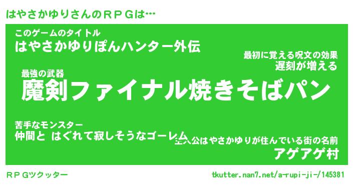 | ヒーロー風カッコイイあだ名 | 『スーパーハヤサカユリ』『魔戒騎士ハヤ』 |
