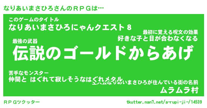 | 男性向けラノベタイトル風あだ名 | 『なりあいまさひろの憂鬱』 |