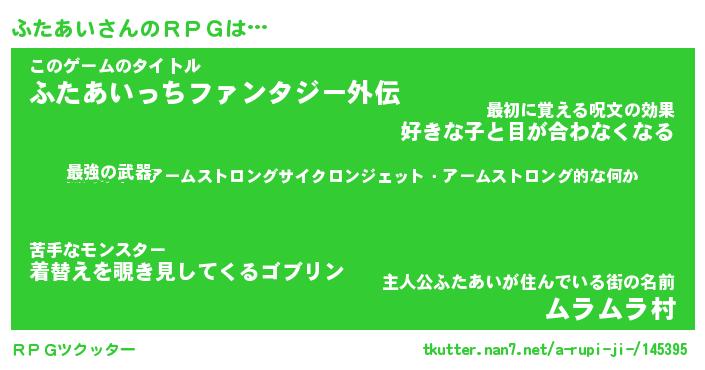 | ファンタジー風あだ名 | 『フタフェル』『エターナルフタアイー』 |