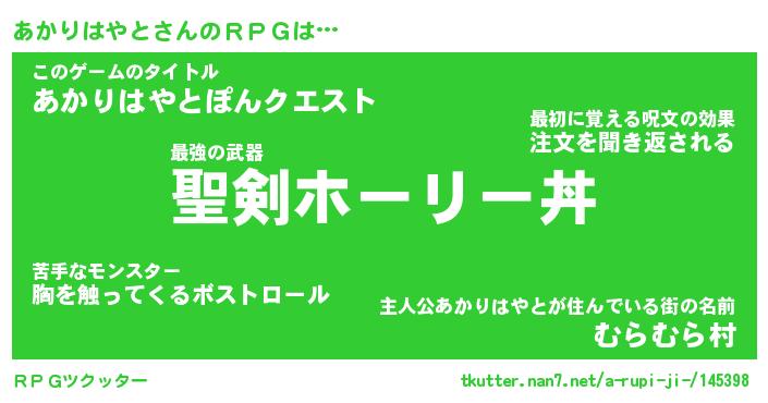 | ツイッター | あかりはやとさんのツイッターID『renkon_star』 |